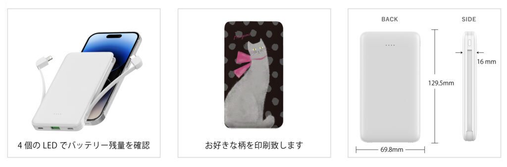 • 1個から小ロットでオリジナルデザインのモバイルバッテリーが制作できます。