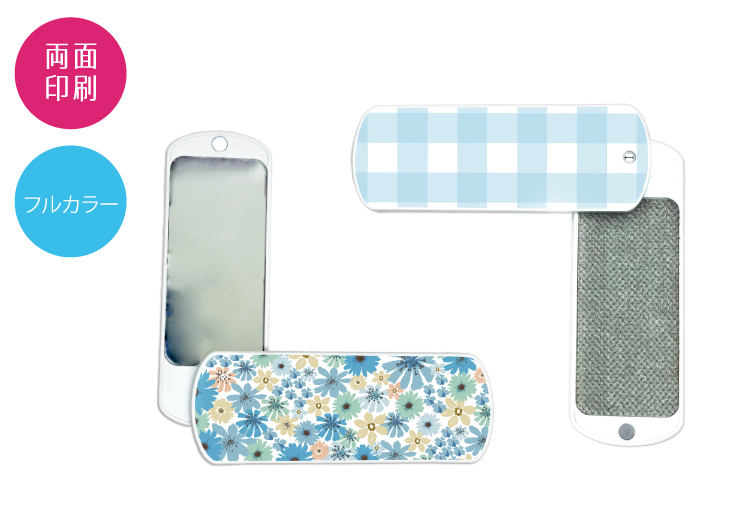 名入れ・ノベルティ・オリジナルグッズ制作|ミラー付クリーナーの印刷 素材…ABS、ガラスサイズ…約W110×H40 厚み7mm30pcs〜対応 …